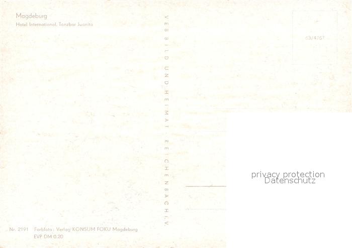 73717105 MAGDEBURG CITY Hotel International Tanzbar Juanita postalisch nicht gelaufen Erhaltung siehe scans [LiesaD40] Lies Katcode 11110015003000