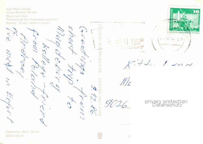 72653492 alte Postkarte MAGDEBURG CITY Karl Marx Str Julius Bremer Str Domblick Promenade der Voelkerfreundschaft Kloster ULB postalisch gelaufen Erhaltung siehe scans [WerneD78] KatCode: 11110015003000