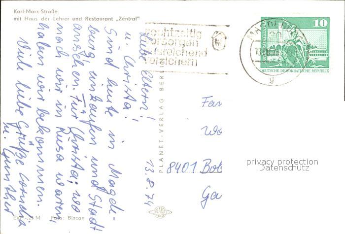 72405881 alte Postkarte MAGDEBURG CITY Karl-Marx-Strasse Haus des Lehrers Restaurant Zentral postalisch gelaufen Erhaltung siehe scans KatCode: 11110015003000