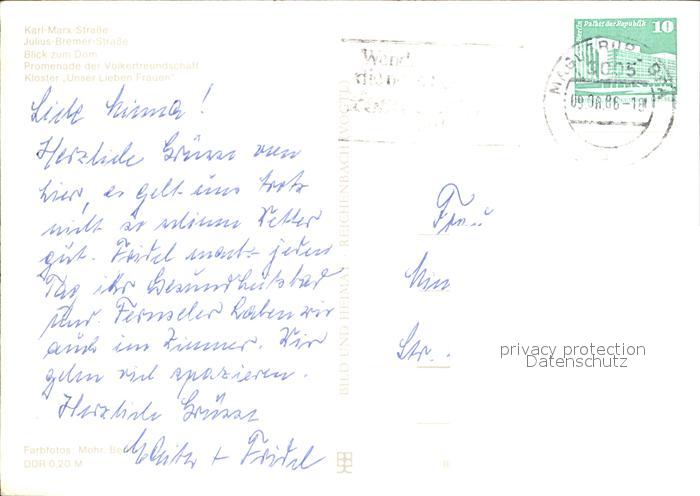 72373117 alte Postkarte MAGDEBURG CITY Karl Marx Strasse Julius Bremer Strasse Dom Promenade der Voelkerfreundschaft Kloster Unser Lieben Frauen postalisch gelaufen Erhaltung siehe scans KatCode: 11110015003000