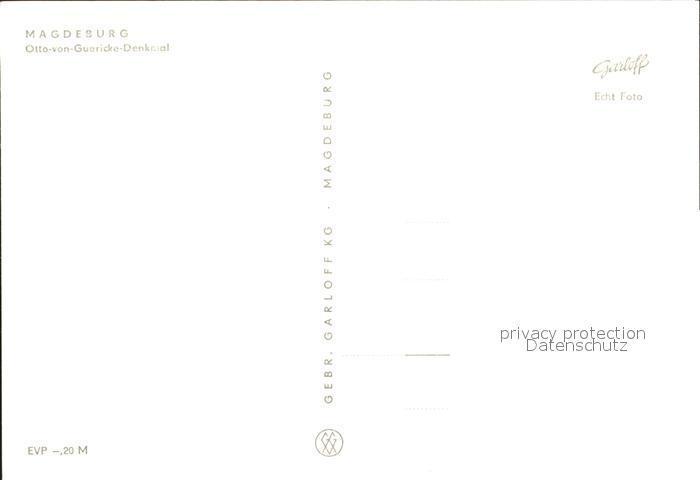 72000827 MAGDEBURG CITY Otto von Guercke Denkmal postalisch nicht gelaufen Erhaltung siehe scans KatCode: 11110015003000