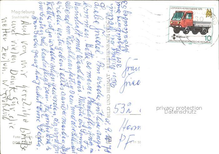 72079305 alte Postkarte MAGDEBURG CITY Stadthalle postalisch gelaufen Erhaltung siehe scans KatCode: 11110015003000