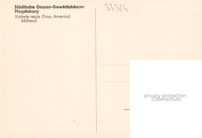 73828799 MAGDEBURG CITY Staedt Gruson Gewaechshaeuser Victoria regia bluehend postalisch nicht gelaufen Erhaltung siehe scans [WerneD78] Wern Katcode 11110015003000