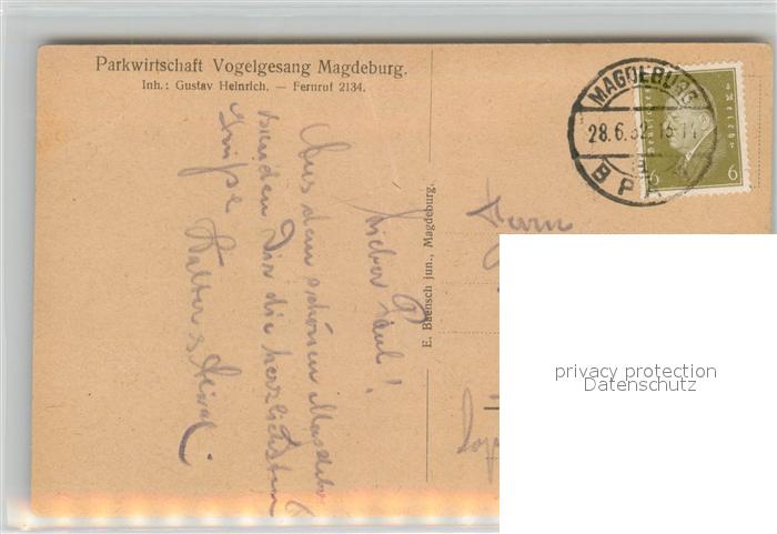 43512036 MAGDEBURG CITY Vogelgesang Parkwirtschaft Rosengarten Brunnen postalisch gelaufen Erhaltung siehe scans [KathaD81] alte Postkarte Kath Katcode 11110015003000