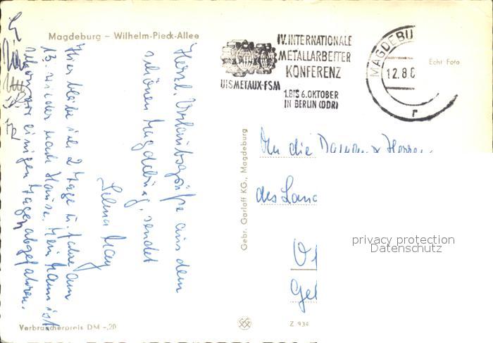 72376734 alte Postkarte MAGDEBURG CITY Wilhelm-Pieck-Allee postalisch gelaufen Erhaltung siehe scans KatCode: 11110015003000
