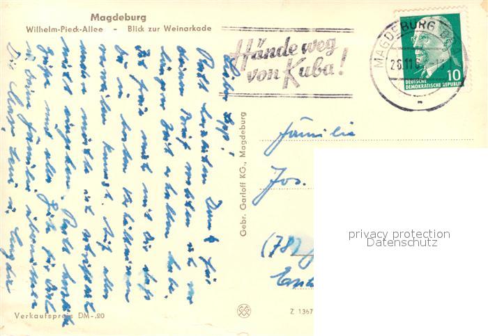 72941966 alte Postkarte MAGDEBURG CITY Wilhelm Pieck Allee Blick zur Weinarkade postalisch gelaufen Erhaltung siehe scans [FriedD77] KatCode: 11110015003000