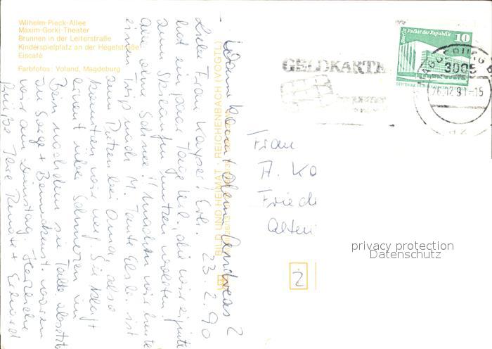 72373152 alte Postkarte MAGDEBURG CITY Wilhelm Pieck Allee Maxim Gorki Theater Brunnen Leiterstrasse Kinderspielplatz Eiscafe postalisch gelaufen Erhaltung siehe scans KatCode: 11110015003000