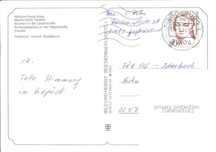 72381557 alte Postkarte MAGDEBURG CITY Wilhelm Pieck Allee Maxim Gorki Theater Brunnen Leiterstrasse postalisch gelaufen Erhaltung siehe scans KatCode: 11110015003000