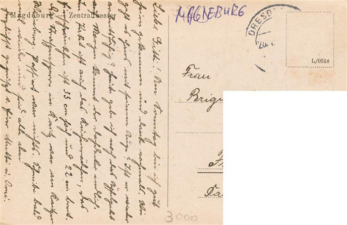 73898715 MAGDEBURG CITY Zentraltheather postalisch gelaufen Erhaltung siehe scans [WerneD78] alte Postkarte Wern Katcode 11110015003000