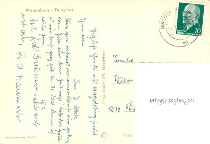 73030271 alte Postkarte Magdeburg Domplatz Dom postalisch gelaufen Erhaltung siehe scans [WerneD78] KatCode: 11110015003000