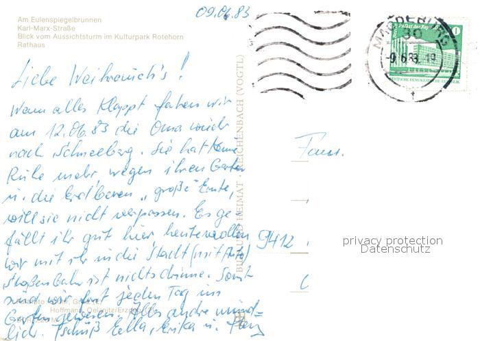 73145125 alte Postkarte Magdeburg Eulenspiegelbrunnen Karl Marx Strasse Blick vom Aussichtsturm Kulturpark Rotehorn Rathaus postalisch gelaufen Erhaltung siehe scans [FriedD77] KatCode: 11110015003000
