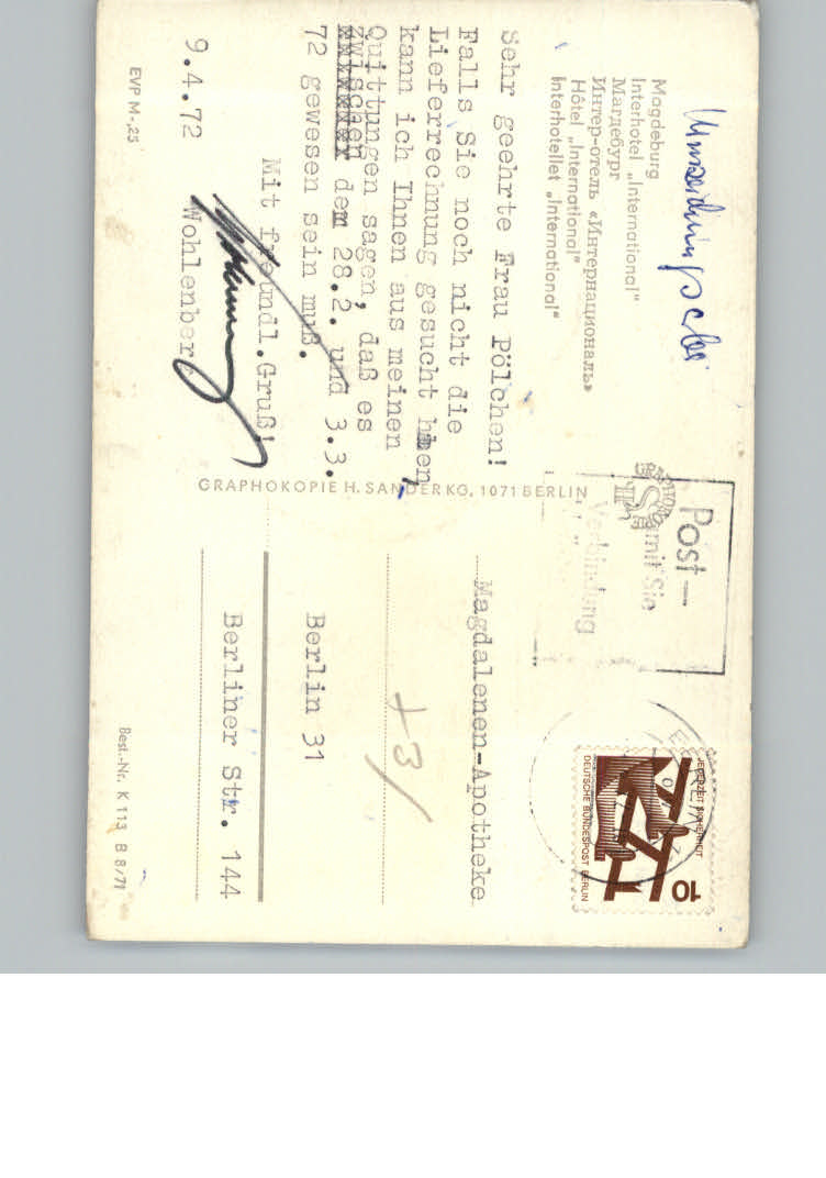 31166967 Magdeburg Hotel International postalisch nicht gelaufen KatCode: 11110015003000