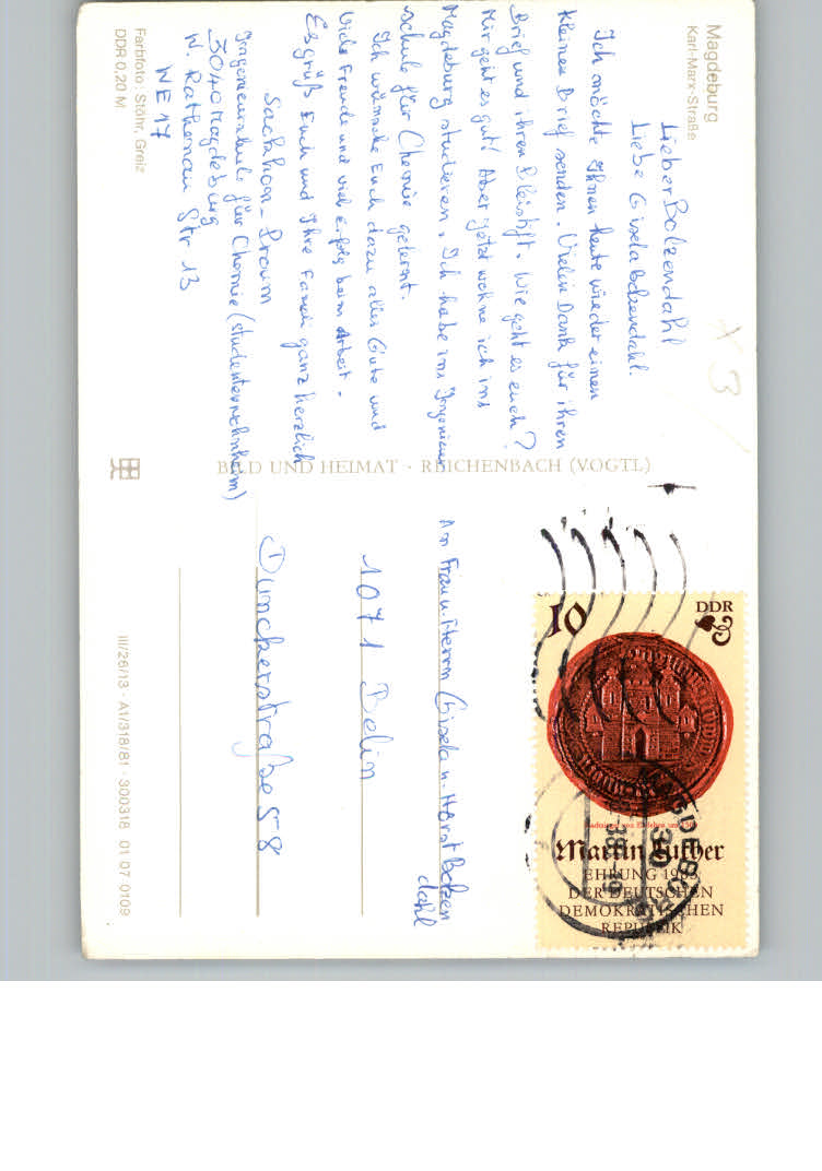 31166910 Magdeburg Karl – Marx -Strasse postalisch nicht gelaufen KatCode: 11110015003000