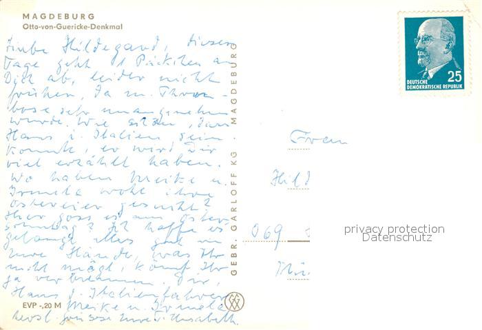 73100631 alte Postkarte Magdeburg Otto von Guericke Denkmal postalisch gelaufen Erhaltung siehe scans [KathaD81] KatCode: 11110015003000