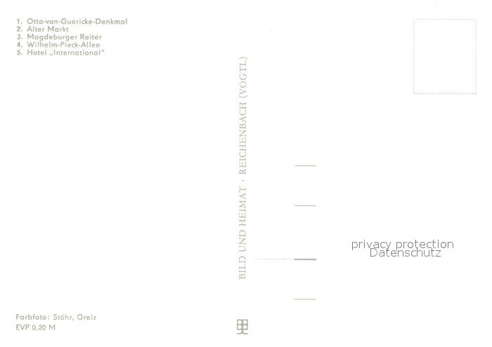 72999402 Magdeburg Otto von Guericke Denkmal Alter Markt Magdeburger Reiter Wilhelm Pieck Allee Hotel International postalisch nicht gelaufen Erhaltung siehe scans [WerneD78] KatCode: 11110015003000