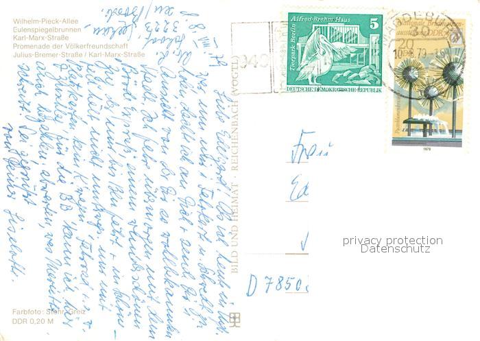 73336621 alte Postkarte Magdeburg Wilh Pieck Allee Eulenspiegelbrunnen Karl Marx Str Promenade der Voelkerfreundschaft Julius Bremer Str postalisch gelaufen Erhaltung siehe scans [WerneD78] KatCode: 11110015003000