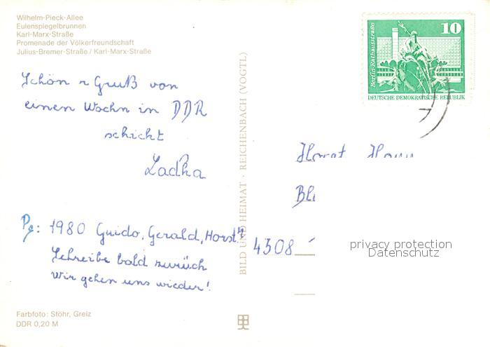 73067727 alte Postkarte Magdeburg Wilhelm Pieck Allee Eulenspiegelbrunnen Karl Marx Strasse Promenade Julius Bremer Strasse postalisch gelaufen Erhaltung siehe scans [WerneD78] KatCode: 11110015003000