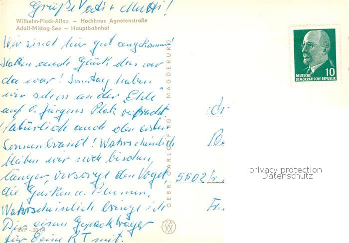 73126785 alte Postkarte Magdeburg Wilhelm Pieck Allee Hochhaus Agnetenstrasse Adolf Mittag See Bahnhof postalisch gelaufen Erhaltung siehe scans [KathaD81] KatCode: 11110015003000