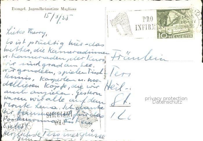 11643947 alte Postkarte Magliaso Ev Jugendheimstaette postalisch gelaufen Erhaltung siehe scans KatCode: 11470210660158