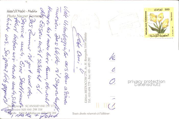 old postcard Mahdia Hotel el Mehdi postalisch gelaufen Erhaltung siehe scans
