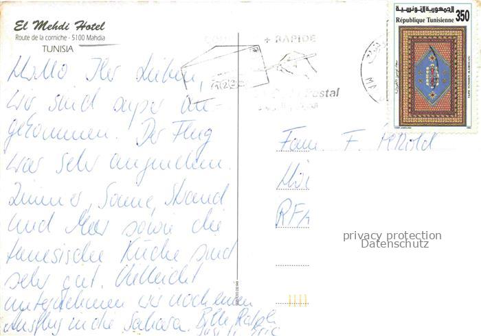 74044125 old postcard Mahdia Tunesie El Mehdi Hotel Pool postalisch gelaufen Erhaltung siehe scans [WerneD78] KatCode: 18520