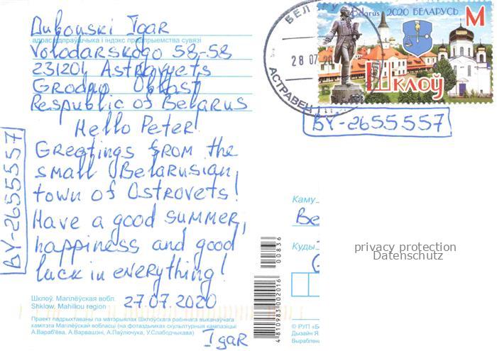 74040302 old postcard Mahilyow Mahiljou Mogiljow Mogilev Belarus Schklou postalisch gelaufen Erhaltung siehe scans [IrynaD87] KatCode: 11060