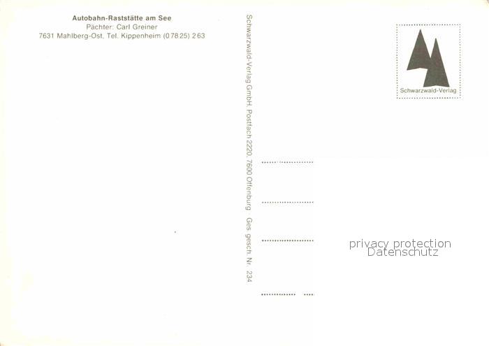 72745916 Mahlberg Baden Autobahn Raststaette am See postalisch nicht gelaufen Erhaltung siehe scans [FriedD77] KatCode: 11110008317073