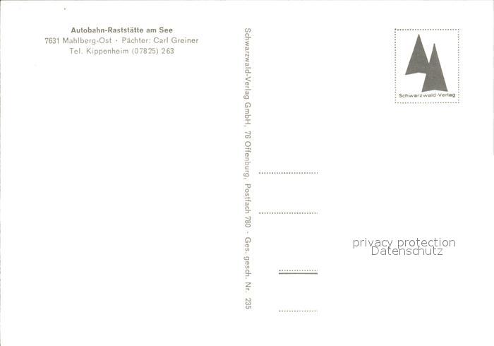 72505993 Mahlberg Baden Autobahn-Raststaette am See postalisch nicht gelaufen Erhaltung siehe scans KatCode: 11110008317073