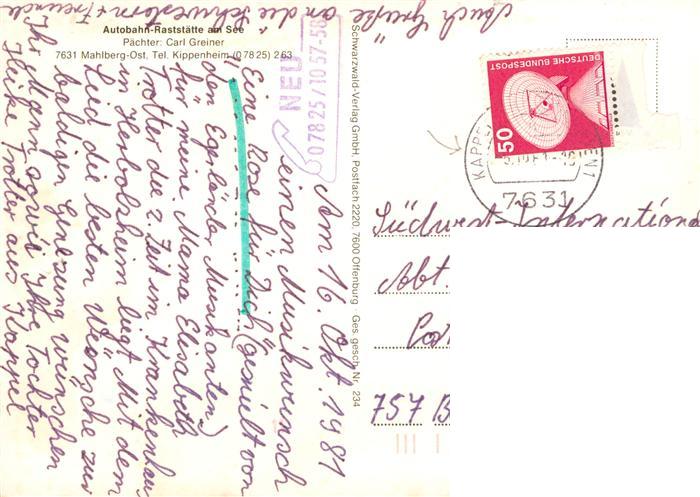 73931549 alte Postkarte Mahlberg Baden BAB Raststaette am See postalisch gelaufen Erhaltung siehe scans [WerneD78] KatCode: 11110008317073