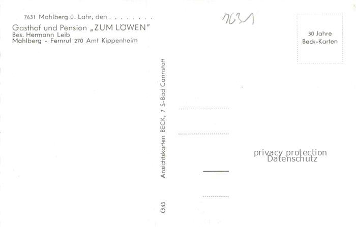74100380 Mahlberg Baden Gasthof Pension Zum Loewen Stadttor Kirche postalisch nicht gelaufen Erhaltung siehe scans [WerneD78] KatCode: 11110008317073