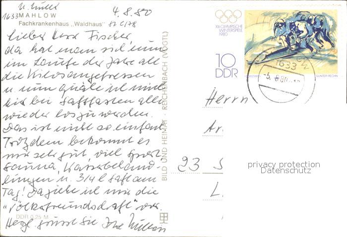 72008159 alte Postkarte Mahlow Fachkrankenhaus Waldhaus postalisch gelaufen KatCode: 11110012072017