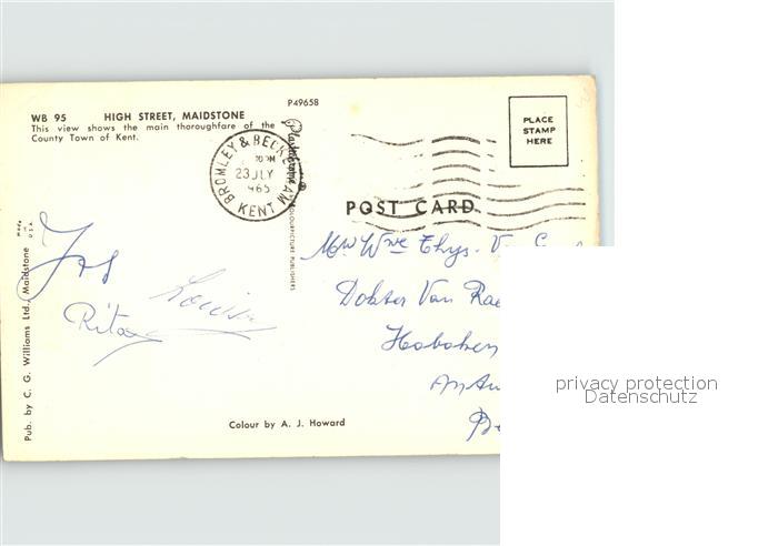 old postcard Maidstone High Street postalisch gelaufen Erhaltung siehe scans