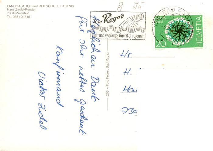 13890657 alte Postkarte Maienfeld GR Landgasthof und Reitschule Falknis postalisch gelaufen Erhaltung siehe scans [WerneD78] KatCode: 11470100330194