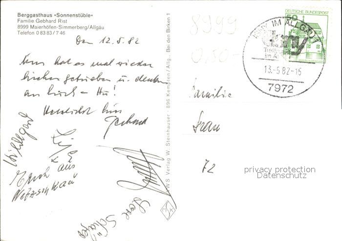 72420442 alte Postkarte Maierhoefen Allgaeu Berggasthaus Sonnenstueble postalisch gelaufen Erhaltung siehe scans KatCode: 11110009776118
