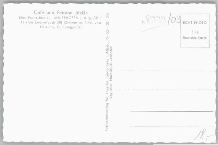 40642018 Maierhoefen Allgaeu fe Pension Jäckle * KatCode 11110009776118