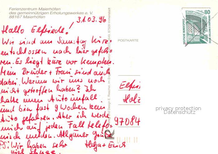 72824552 alte Postkarte Maierhoefen Allgaeu Ferienzentrum postalisch gelaufen Erhaltung siehe scans [AndreD76] KatCode: 11110009776118