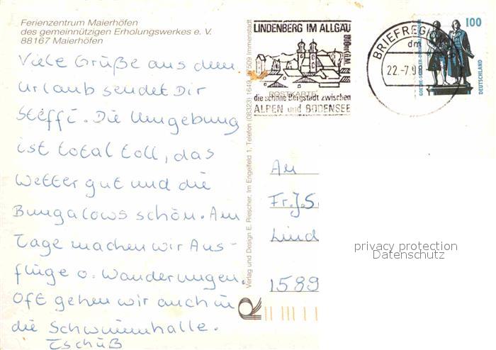 72727301 alte Postkarte Maierhoefen Allgaeu Ferienzentrum postalisch gelaufen Erhaltung siehe scans [LiesaD40] KatCode: 11110009776118
