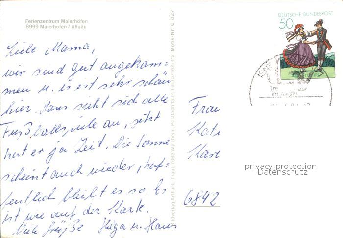 72128349 alte Postkarte Maierhoefen Allgaeu Ferienzentrum Hallenbad Speisesaal postalisch gelaufen KatCode: 11110009776118