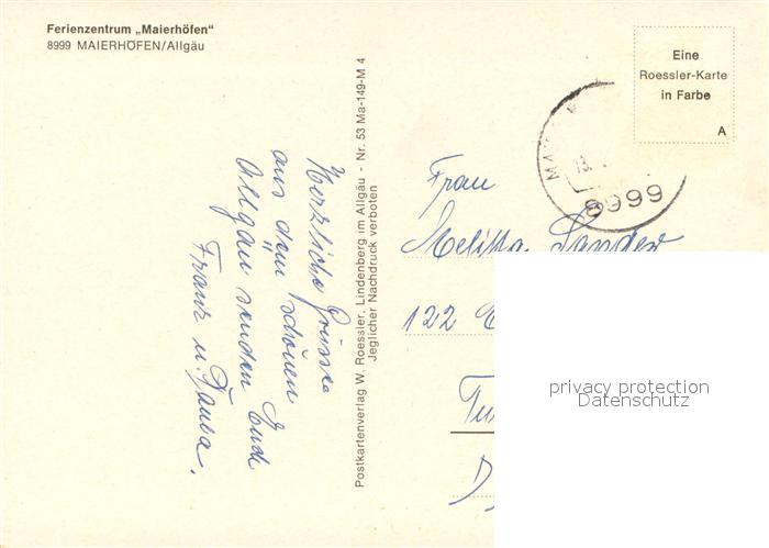 73660399 alte Postkarte Maierhoefen Allgaeu Ferienzentrum Kegelbahn Hallenbad Viehweide Kuehe postalisch gelaufen Erhaltung siehe scans [FriedD77] KatCode: 11110009776118
