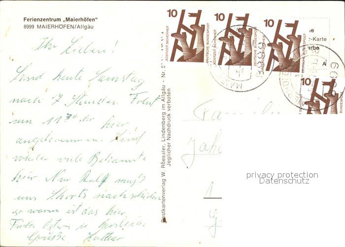 72582897 alte Postkarte Maierhoefen Allgaeu Ferienzentrum Schwimmbad postalisch gelaufen Erhaltung siehe scans [LiesaD40] KatCode: 11110009776118