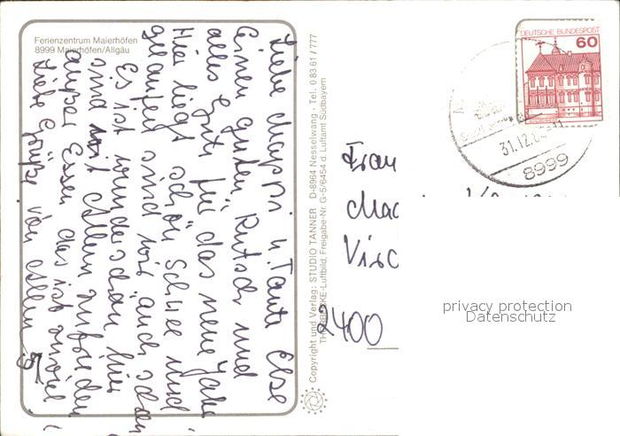 72426141 alte Postkarte Maierhoefen Allgaeu Ferienzentrum Winterpanorama Fliegeraufnahme postalisch gelaufen Erhaltung siehe scans KatCode: 11110009776118