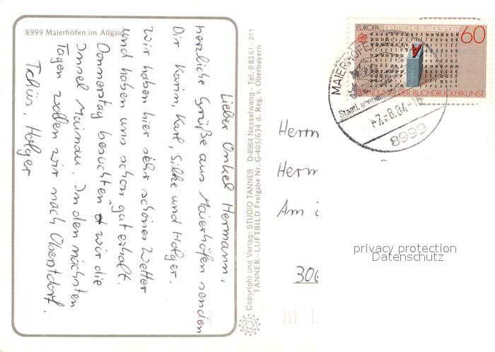 73226922 alte Postkarte Maierhoefen Allgaeu Fliegeraufnahme postalisch gelaufen Erhaltung siehe scans [LiesaD40] KatCode: 11110009776118