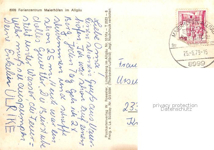 72969874 alte Postkarte Maierhoefen Allgaeu Fliegeraufnahme Ferienzentrum postalisch gelaufen Erhaltung siehe scans [LiesaD40] KatCode: 11110009776118