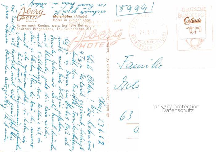 72770066 alte Postkarte Maierhoefen Allgaeu Fliegeraufnahme Iberg Hotel postalisch gelaufen Erhaltung siehe scans [AndreD76] KatCode: 11110009776118