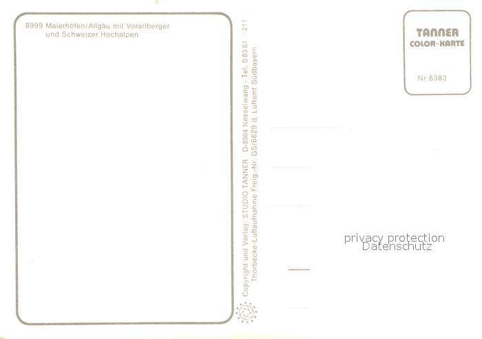 73707205 Maierhoefen Allgaeu Fliegeraufnahme mit Vorarlberger und Schweizer Hochalpen postalisch nicht gelaufen Erhaltung siehe scans [WerneD78] KatCode: 11110009776118