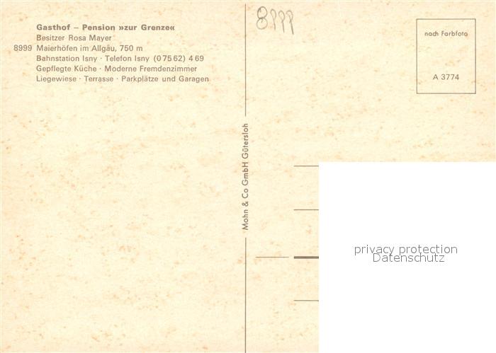 73086738 Maierhoefen Allgaeu Gasthof zur Grenze postalisch nicht gelaufen Erhaltung siehe scans [NatalD47] KatCode: 11110009776118