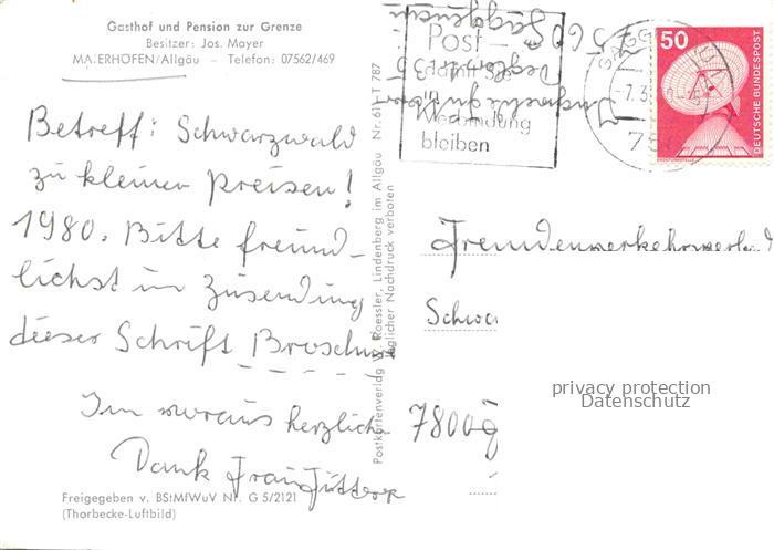 74095984 alte Postkarte Maierhoefen Allgaeu LINDAU Bayern Gasthof und Pension zur Grenze Fliegeraufnahme postalisch gelaufen Erhaltung siehe scans [WerneD78] KatCode: 11110009776118