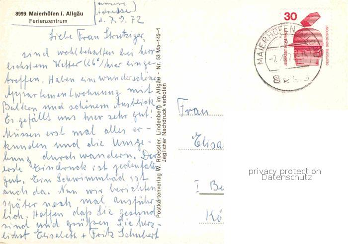 72885580 alte Postkarte Maierhoefen Allgaeu Panorama Ferienzentrum postalisch gelaufen Erhaltung siehe scans [FriedD77] KatCode: 11110009776118
