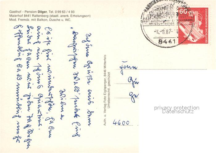 73685074 alte Postkarte Maierhof Rattenberg Gasthof Pension Dilger Restaurant Bayerischer Wald postalisch gelaufen Erhaltung siehe scans [FriedD77] KatCode: 11110009278178