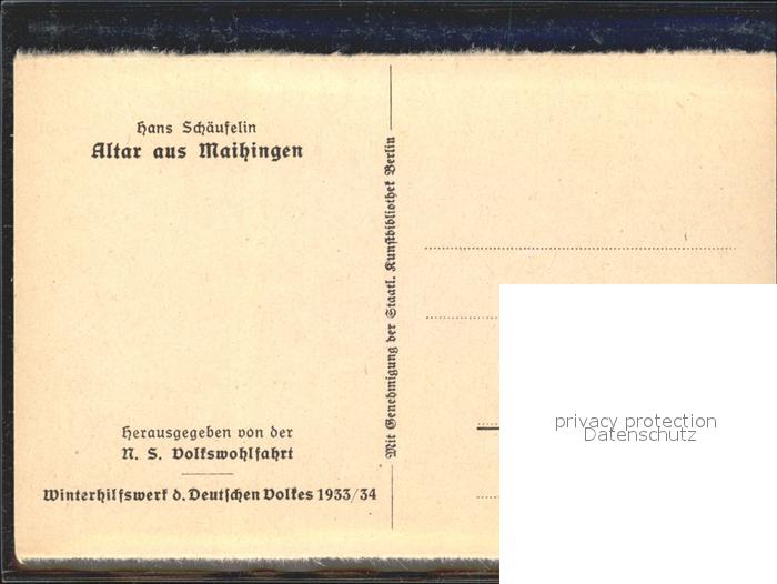71838852 Maihingen Hans Schaeufelin Altar Winterhilfswerk des Deutschen Volkes postalisch nicht gelaufen Erhaltung siehe scans KatCode: 11110009779176